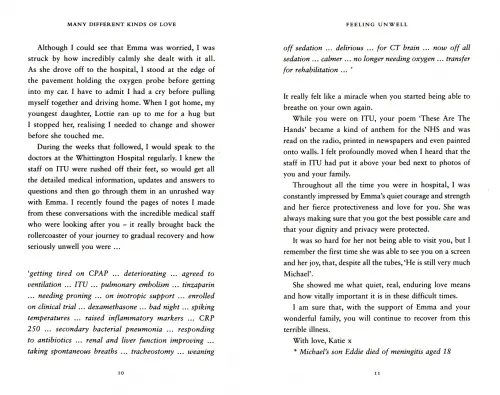 What followed was months on the wards: six weeks in an induced coma, and many more weeks of rehab and recovery as the NHS saved Michael's life, and then got him back on his feet. Throughout Michael's stay in intensive care, a notebook lay at the end of his bed, where the nurses who cared for him wrote letters of hope and support. Embarking on the long road to recovery, Michael was soon ready to start writing about his near-death experience.