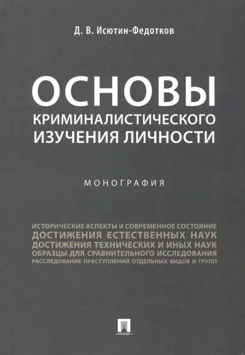 Если вы обнаружили ошибку в описании товара «Основы криминалистического изучения личности. Монография» (авторы: Исютин-Федотков Дмитрий Владимирович), то выделите её мышкой и нажмите Ctrl+Enter. Спасибо, что помогаете нам стать лучше!