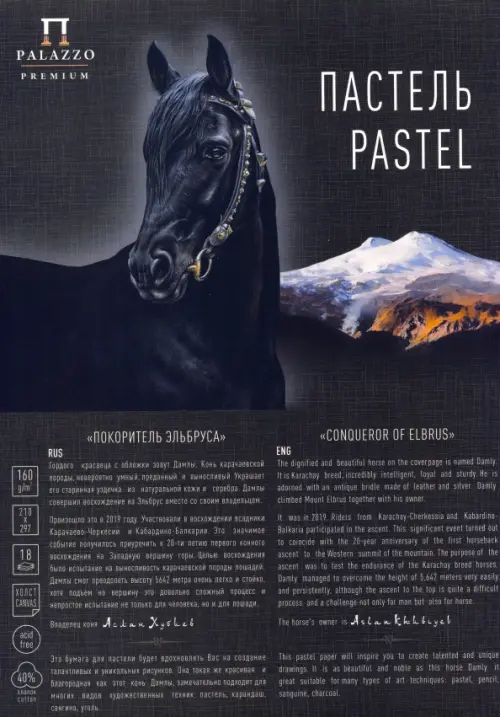Бумага внутреннего блока имеет плотность 160 г/м2, состоит из 40% хлопкового волокна и имеет тиснение "Холст" с одной стороны как все импортные аналоги, предназначенные для пастельных работ.