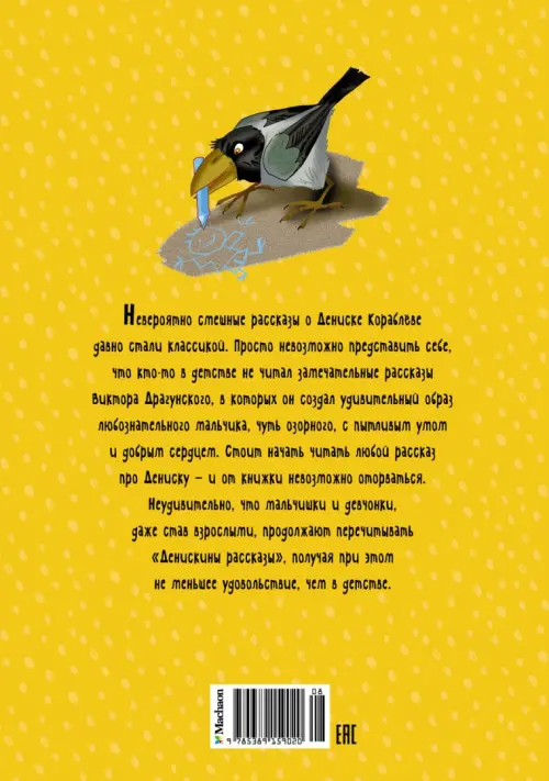 Невероятно смешные рассказы о Дениске Кораблёве давно стали классикой. Просто невозможно представить себе, что кто-то в детстве не читал замечательные рассказы Виктора Драгунского, в которых он создал удивительный образ любознательного мальчика, чуть озорного, с пытливым умом и добрым сердцем. Стоит начать читать любой рассказ про Дениску — и от книжки невозможно оторваться. Неудивительно, что мальчишки и девчонки, даже став взрослыми, продолжают перечитывать «Денискины рассказы», получая при этом не меньшее удовольствие, чем в детстве.