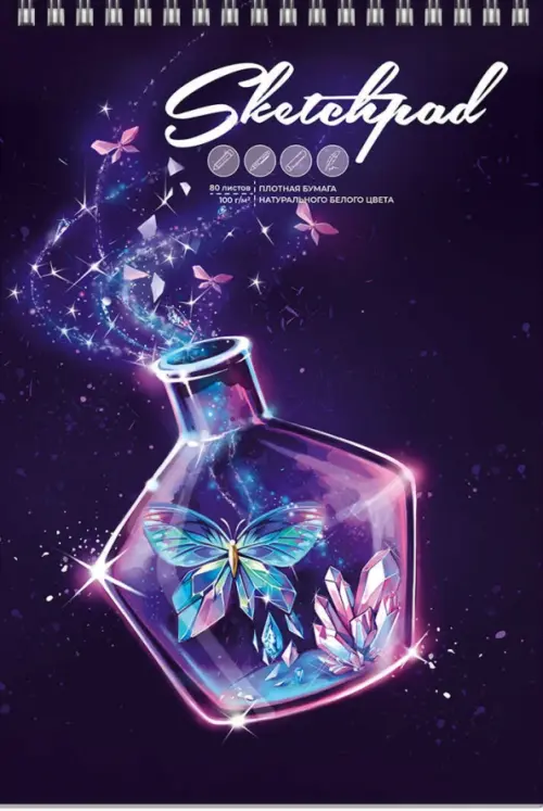 Скетчпад А4 210х290 мм, 80 л, блок - белый офсет 100 г/м?, арт. 62831 КРИСТАЛЛЫ /обложка полноцветная печать, твёрдый переплёт на гребне, матовая ламинация,