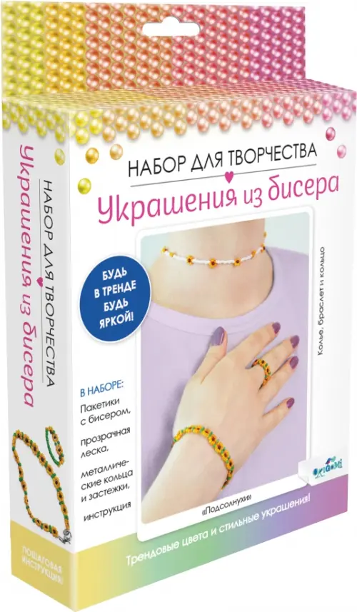 Больше блёсток!Если вы обнаружили ошибку в описании товара «Набор для создания украшений из бисера. Колье, браслет и кольцо. Подсолнухи», то выделите её мышкой и нажмите Ctrl+Enter. Спасибо, что помогаете нам стать лучше!