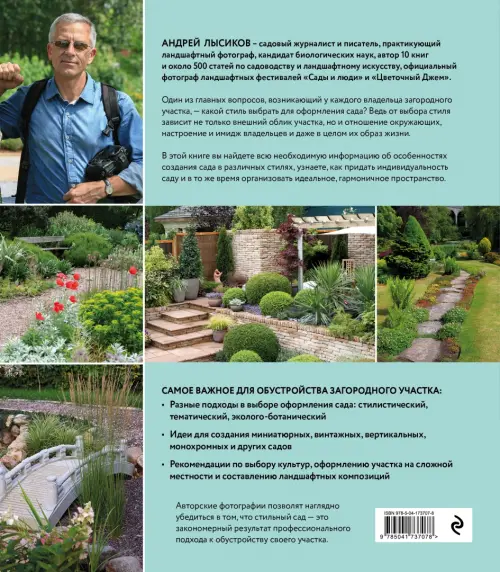 Автор книги, известный ландшафтный дизайнер и фотограф Андрей Лысиков подробно рассказывает об особенностях создания сада в различных стилях, подсказывает, как придать индивидуальность саду и в то же время создать идеальное гармоничное пространство.