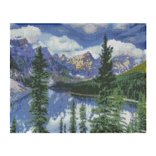 Набор для творчества Алмазная мозаика арт. 62406 / 16 ГОРНОЕ ОЗЕРО, размер: 40*50 см, (26 цветов страз, холст на подрамнике с напечатенной картиной, покрытый клеевым слоем и защитной пленкой, пакеты со стразами, лоток для страз, стилус, силикон для страз, клей, пинцет металлический, подвесы для подрамника, схема, дополнительные пакеты с zip-молнией в комплекте, форма страз: круглая, тип выкладки: полная, картонная коробка с ручкой)