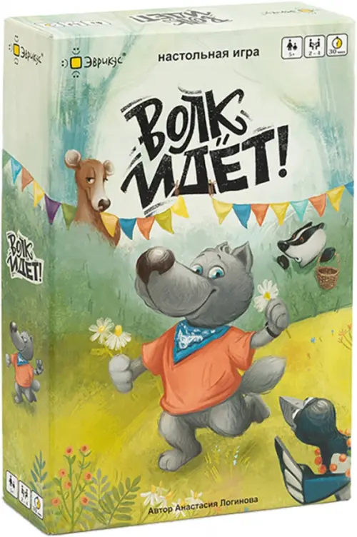 Волк идёт — это кооперативная игра для всей семьи. Игроки объединены одной целью — подготовить праздник для Волка-именинника. Вам нужно будет перемещать фигурки лесных зверят по игрвому полю и открывать жетоны леса, чтобы найти подарки и угощения. Их необходимо отнести к домику Волка раньше, чем туда дойдёт именинник.