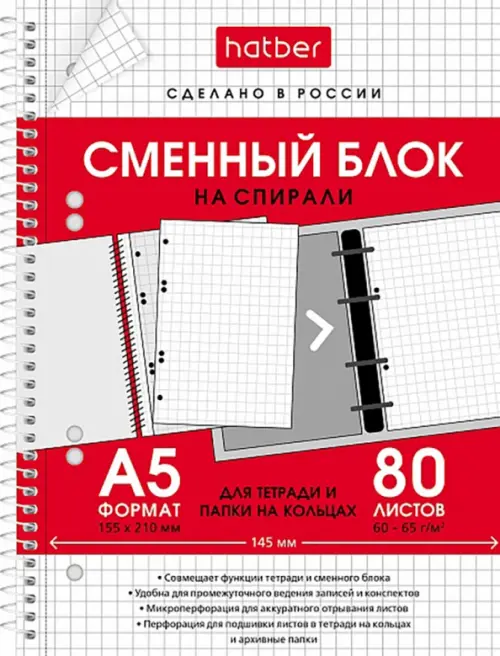 Тетради и дневникиЕсли вы обнаружили ошибку в описании товара «Блок сменный 80 листов, А5, на спирали, для тетрадей на кольцах», то выделите её мышкой и нажмите Ctrl+Enter. Спасибо, что помогаете нам стать лучше!