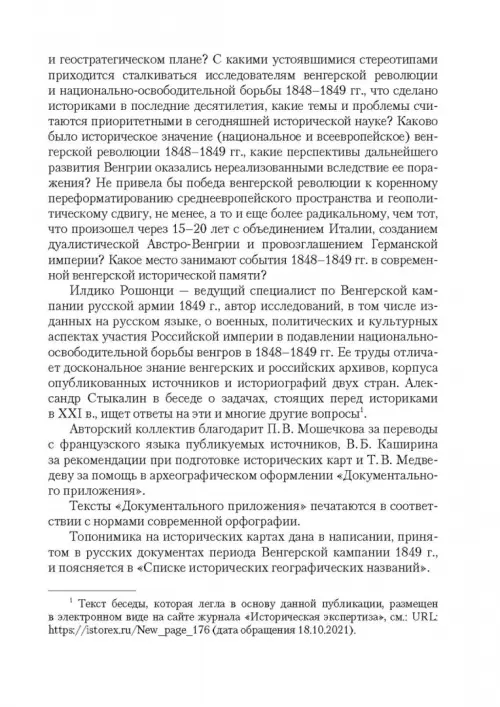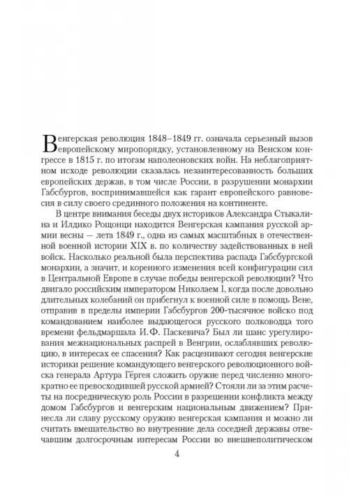 Венгерский историк Илдико Рошонци и ее российский коллега Александр Стыкалин в формате диалога всесторонне рассматривают Венгерскую кампанию русской армии весной и летом 1849 г.