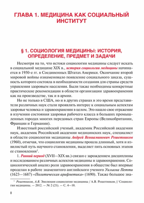 Системно изложены и аккумулированы базовые вопросы современной социологии медицины. Доступно излагаются современные научные знания по социологии медицины, систематизированы знания о здоровье человека, о роли и значении медицины и здравоохранения в жизни общества, о сущности, характеристиках и функциях системы охраны здоровья как социального феномена. Подробно раскрывается содержание медицины как социального института, социальной роли и места медицинской науки в обществе, специфики охраны здоровья населения, вопросы социологии медицины чрезвычайных ситуаций, социальной реабилитации и профилактики, медико-социальные основы управления здоровьем населения.