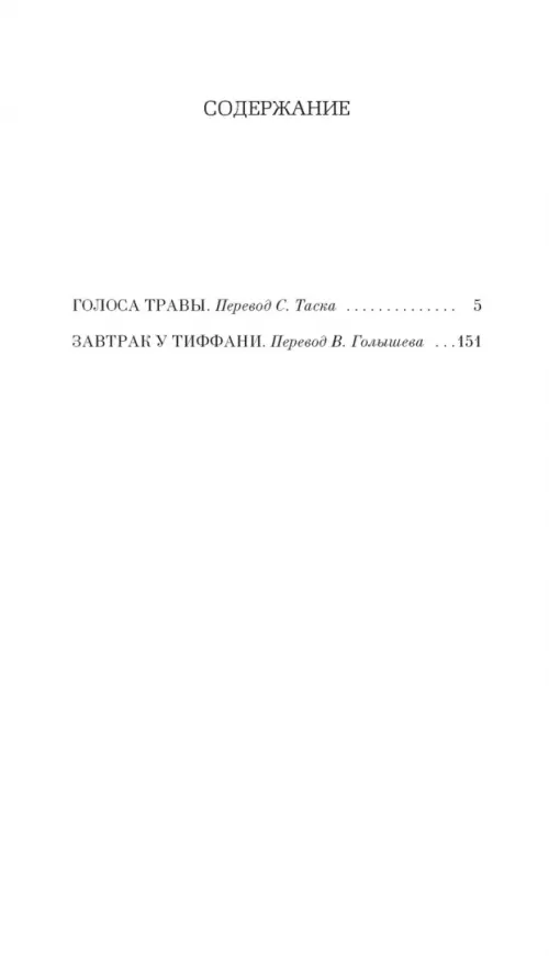 Вниманию читателя предлагаются две его классические повести: лирические «Голоса травы», публикующиеся в новом переводе, а также самое знаменитое произведение Капоте, прославленное в 1961 году экранизацией с Одри Хепберн в главной роли, сыгравшей главную героиню повести Холли Голайтли, одну из самых ярких и необычных женщин американской литературы. Эксцентричную, полную жизни Холли влечет к себе мир богатых людей, сверкающий яркими огнями бриллиантовых колье. Руководствуясь в своих поступках лишь голосом сердца, сочетая детскую наивность с чарующим обаянием настоящей женщины, она как бы воплощает в себе саму сущность Нью-Йорка — города, в котором мечты лежат на расстоянии вытянутой руки, отгороженные блестящими стеклами пленяющих взгляды витрин.
