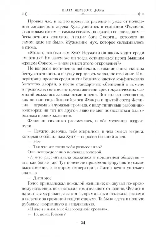 Властная императрица Ласин начинает Великую чистку, планомерно избавляясь от имперской элиты и всех, кто к ней сопричастен. Правая ее рука в этом деле — новая адъюнктесса Тавора, отличающаяся особой жестокостью.