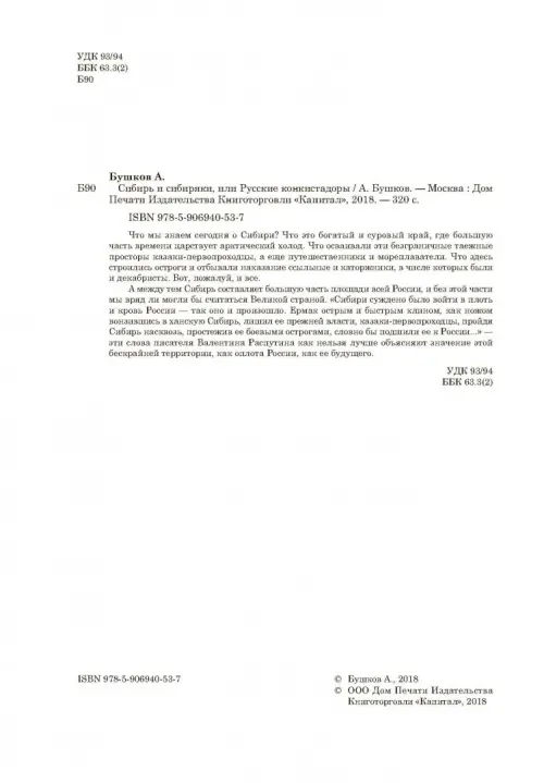 Если вы обнаружили ошибку в описании товара «Сибирь и сибиряки, или Русские конкистадоры» (авторы: Бушков Александр Александрович), то выделите её мышкой и нажмите Ctrl+Enter. Спасибо, что помогаете нам стать лучше!