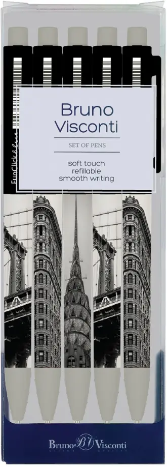 Набор из 5 шариковых ручек FunClick. New York, синие