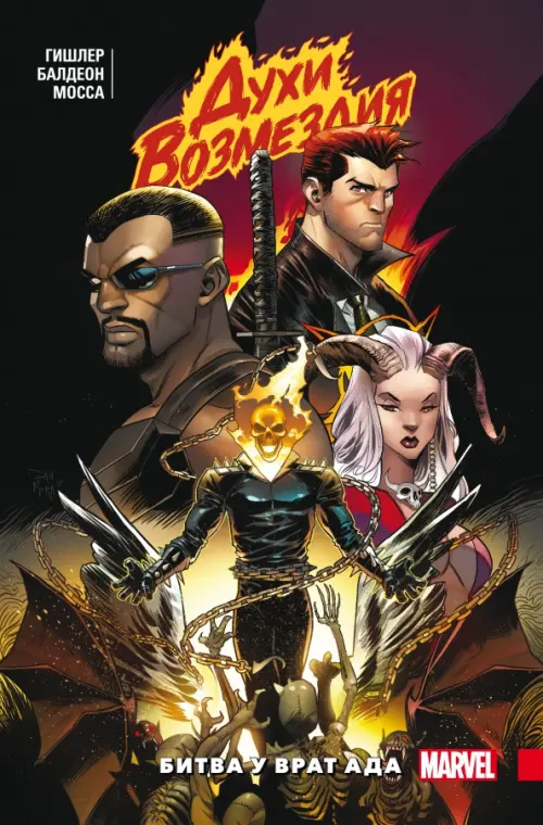 Веками в незримом противостоянии между небесами и преисподней царило хрупкое равновесие. Но убийство ангела меняет всё! Джонни Блейз должен найти и покарать виновных, однако в одиночку ему не справиться. И тогда герои, обитающие в темнейших глубинах вселенной Marvel, создают нечестивый союз. Призрачный Гонщик! Хеллстром! Сатана! Блэйд! Они - духи возмездия, и только им под силу распутать заговор против самого Бога. Зловещий Некродамус грозит миру катаклизмом, невиданным со времён Ветхого Завета. Рокот боевых барабанов всё громче, и лишь духи возмездия способы встать меж армиями рая и ада.