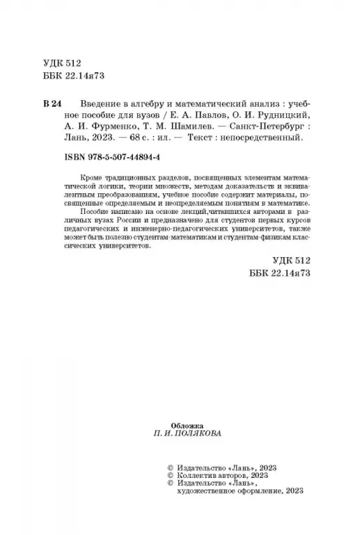 Если вы обнаружили ошибку в описании товара «Введение в алгебру и математический анализ. Учебное пособие» (авторы: Павлов Евгений Александрович, Рудницкий Олег Иванович, Фурменко Александр Иванович), то выделите её мышкой и нажмите Ctrl+Enter. Спасибо, что помогаете нам стать лучше!