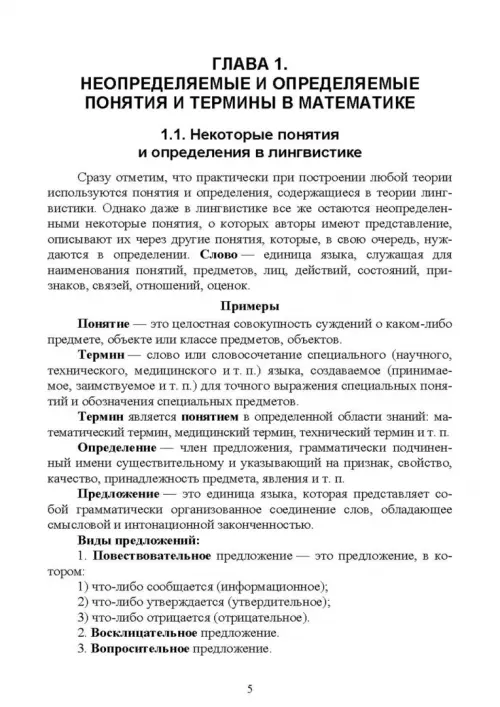 Кроме традиционных разделов, посвященных элементам математической логики, теории множеств, методам доказательств и эквивалентным преобразованиям, учебное пособие содержит материалы, посвященные определяемым и неопределяемым понятиям в математике.