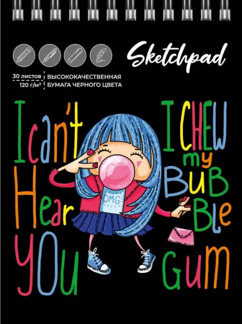 Скетчпад Озорная девчонка, 30 листов, черная бумага