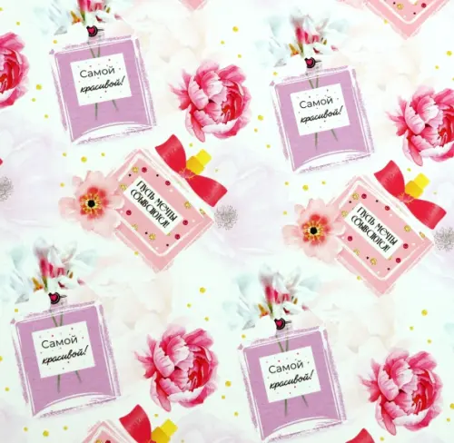 Бумага оберточная для сувенирной продукции в рулонах, с полноцветным декоративным рисунком, плотность 90 г/м2 / 100х70см.