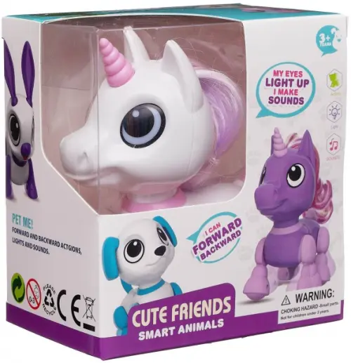 Очаровательная миниатюрная интерактивная Лошадка-единорог от бренда Junfa покорит сердце любой девочки с первого взгляда. У лошадки большие глаза, характерный рог, грива, которую можно расчесывать. Ее корпус белого цвета, а лапы, хвостик, рог - розового, грива имеет перламутровую окраску в сиренево-розовых тонах. Единорожка умеет ходить вперед и назад, при этом работает подсветка ее глаз, она издает характерные для лошадки звуки.