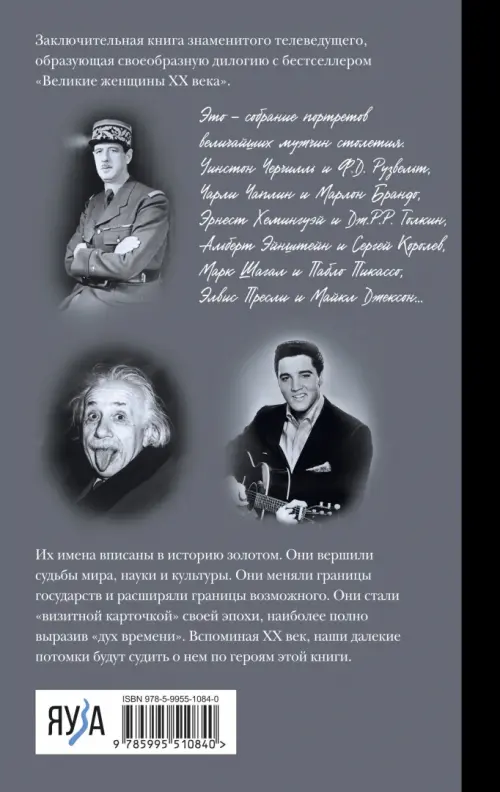 Заключительная книга знаменитого телеведущего, образующая своеобразную дилогию с бестселлером «Великие женщины XX века». Это — собрание портретов величайших мужчин столетия. Уинстон Черчилль и Ф.Д. Рузвельт, Чарли Чаплин и Марлон Брандо, Эрнест Хемингуэй и Дж.Р.Р. Толкин, Альберт Эйнштейн и Сергей Королев, Марк Шагал и Пабло Пикассо, Элвис Пресли и Майкл Джексон…