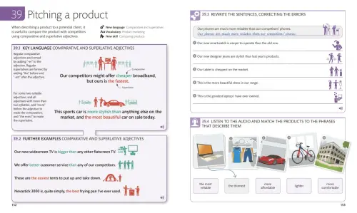 Изучайте деловой английский, укрепляя ключевые языковые навыки, грамматические правила и словарный запас с помощью упражнений на аудирование, разговорную речь, чтение и письмо.