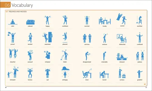 - Visual English vocabulary cues: Lists of useful English words and common phrases with visual aids are available throughout the book