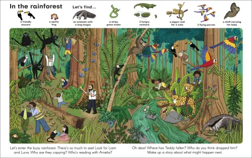 With so many favourite animals to talk about, and characters to follow from page to page, children can use their imaginations to tell their own story while learning about an array of animals across five unique habitats along the way.