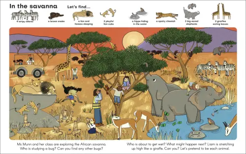 From colourful coral reefs to the action-packed African savanna, this stunning book can help children aged 0-3 to build their vocabulary by visiting beautiful animal homes, searching through the busy scenes, then pointing to and naming all sorts of incredible animals. Celebrate your child's curiosity as they join Ms Munn and her class of excitable school children as they take a trip around the world meeting hundreds of animals with their friendly tour guide, Tod.