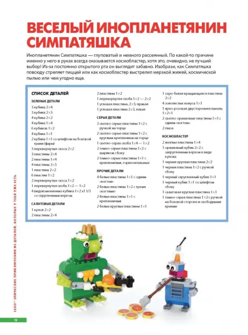 Потрясающие новые модели, пошаговые инструкции и множество красочных фотографий - даже начинающие LEGO-строители без труда справятся с задачей. А если ребёнок считает себя опытным мастером, предложите ему собрать новую модель по одной только фотографии. В любом случае, скучно не будет!