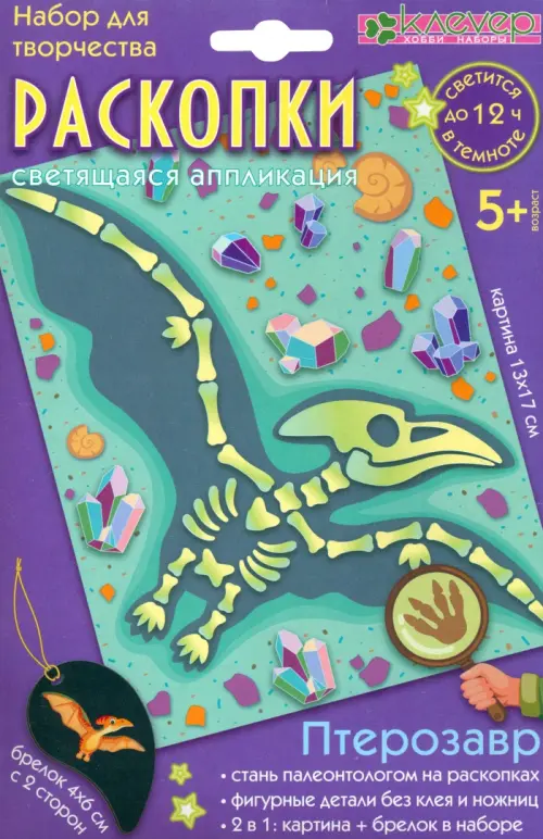 Набор «Раскопки. Птерозавр» - находка для любознательных детей! Ребёнок старше 5 лет не только погрузится в творческий процесс создания картины и брелока, но и представит себя в роли палеонтолога, открывающего миру скелет ископаемого животного, собирая его по косточкам.