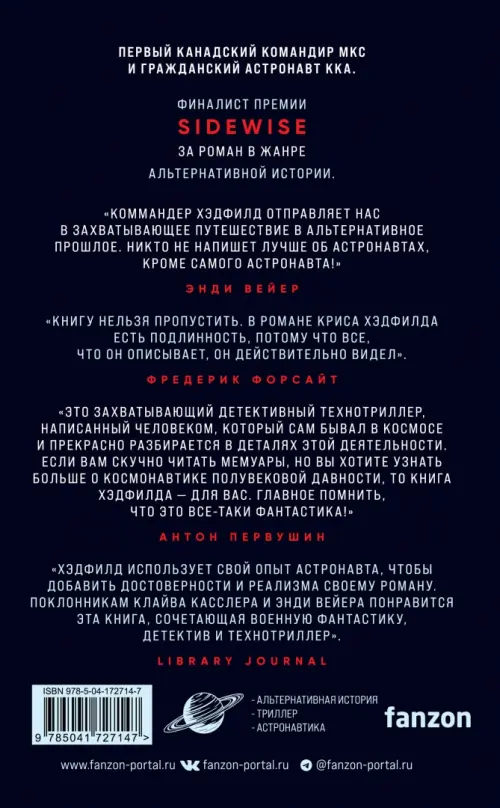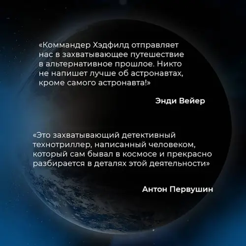 "Коммандер Хэдфилд отправляет нас в захватывающее путешествие в альтернативное прошлое. Никто не напишет лучше об астронавтах, кроме самого астронавта!" - Энди Вейр