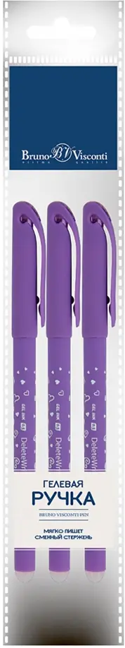Набор из 3 шариковых ручек Пиши-стирай, DeleteWrite Art. Сердечки, синие