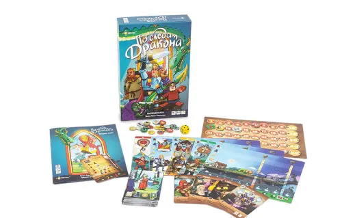 По следам дракона - это настольная игра-путешествие, в которой отважные рыцари (от 1 до 4 храбрецов!) отправятся спасать принцессу. Им предстоит посетить различные сказочные земли, вступить в битву с драконом, спасти из заточения принцессу, и наконец, отправиться в обратный путь с мешками, полными драгоценностей! Победит рыцарь, собравший как можно больше наград, среди которых и спасённая принцесса, и голова дракона, и волшебные кристаллы.