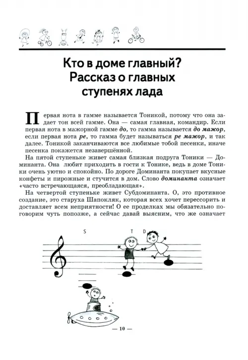 Книга предназначена для учеников музыкальной школы, для родителей учеников, желающих помочь своим детям освоить азы теории музыки, а также для преподавателей музыкальных школ, проявляющих интерес к различным направлениям в современной музыкальной педагогике. Главная особенность предлагаемой методики заключается в том, что постижение теоретических основ музыки происходит благодаря обучению детей на уроках сольфеджио сочинению мелодий, импровизации, подбору аккомпанемента. Все необходимые теоретические сведения содержатся в предлагаемых песенках-правилах. Это в значительной степени экономит время на уроке, поскольку позволяет отказаться от утомительных записей. Чтобы избежать нарушения авторских прав, в книге приведен далеко не весь музыкальный материал, используемый на уроках. Исключение составляют несколько песен-правил, чье авторство выяснить не удалось, но они давно звучат на уроках многих преподавателей. Предлагаемые в книге музыкальные игры позволяют не только закрепить изучаемый материал, но и сделать предмет "сольфеджио" привлекательным и даже любимым.