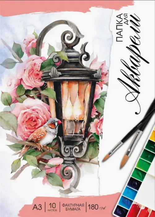 Папка для акварели, А3, папка с клапанами, 10 л, обложка - полноцветная печать, мелованный картон 240 г/м2, блок - белая акварельная бумага