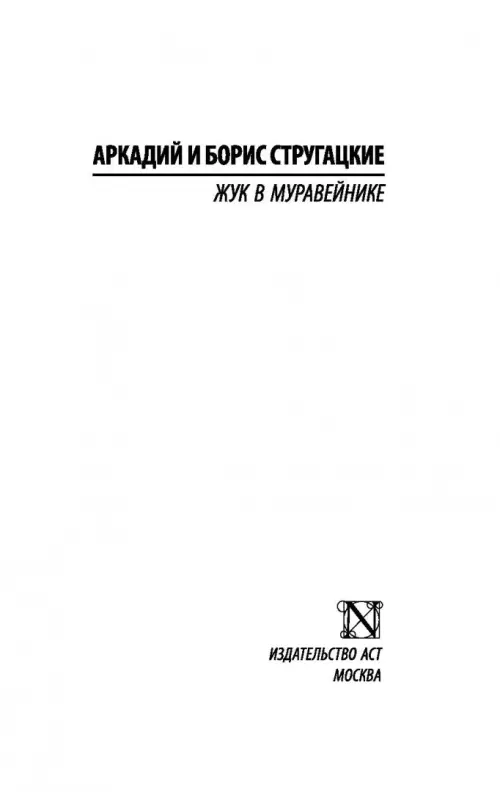 Если вы обнаружили ошибку в описании товара «Жук в муравейнике» (авторы: Стругацкий Аркадий Натанович, Стругацкий Борис Натанович), то выделите её мышкой и нажмите Ctrl+Enter. Спасибо, что помогаете нам стать лучше!
