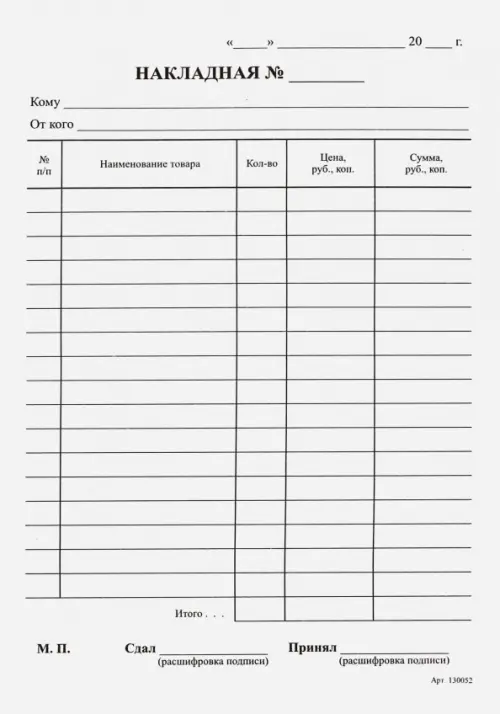 Если вы обнаружили ошибку в описании товара «Бланк НАКЛАДНАЯ, 100 листов, А5», то выделите её мышкой и нажмите Ctrl+Enter. Спасибо, что помогаете нам стать лучше!