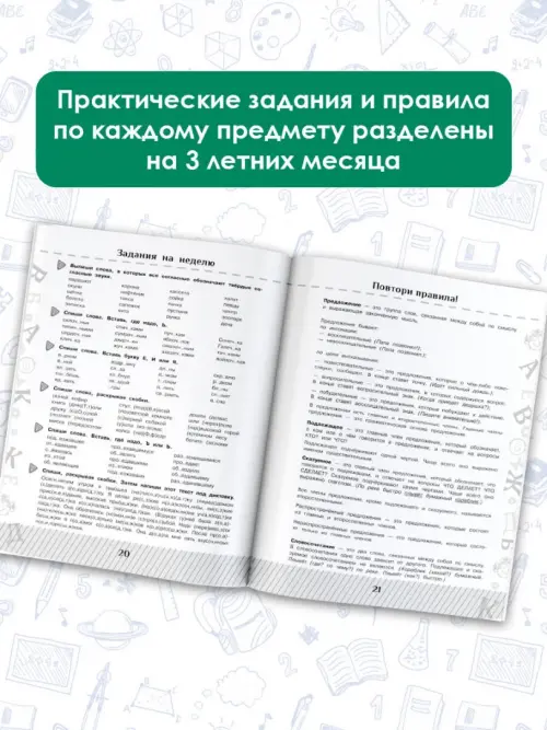 Регулярно обращаясь к материалу этих книг, ученик доведёт до автоматизма умение решать задачи, неравенства, навыки грамотного письма и твёрдо запомнит математические и орфографические правила, которые входят в программу начальной школы.