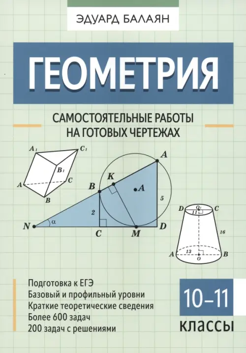 Предлагаемые самостоятельные работы по геометрии на готовых чертежах предназначены для занятий в 10-11 классах. Они ориентированы на учебник "Геометрия. 10-11 классы" Л. С. Атанасяна и др. Вместе с тем их можно использовать при работе и по другим учебникам для 10-11 классов, входящим в Федеральный перечень учебной литературы.