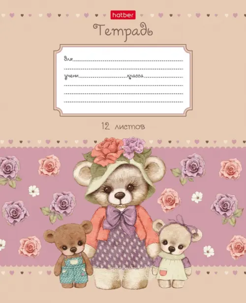 Тетрадь Мишки-малышки, 12 листов, косая линия, А5