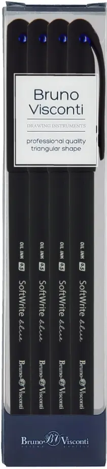 Набор из 4-х шариковых ручек «SoftWrite. Black» от Bruno Visconti для тех, кто предпочитает качество и комфорт при работе с письменными принадлежностями.