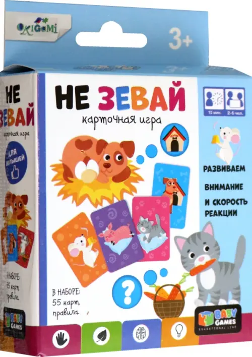 Если вы обнаружили ошибку в описании товара «Не зевай. Карточная игра. 3+», то выделите её мышкой и нажмите Ctrl+Enter. Спасибо, что помогаете нам стать лучше!
