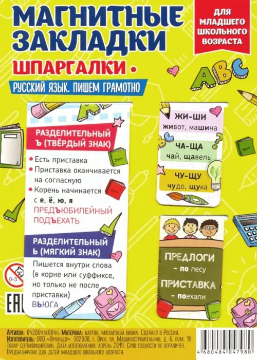 Если вы обнаружили ошибку в описании товара «Набор магнитных закладок "Русский язык. Пишем грамотно. Часть 1"», то выделите её мышкой и нажмите Ctrl+Enter. Спасибо, что помогаете нам стать лучше!