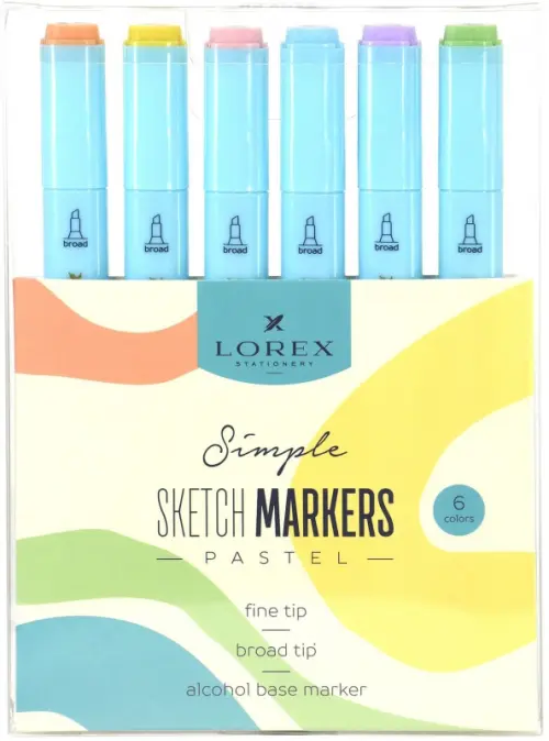 Набор скетч-маркеров LOREX PASTEL состоит из 6 пастельных оттенков. Упакован в удобную пластиковую коробку.