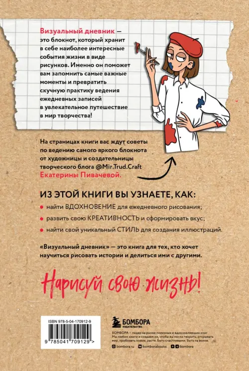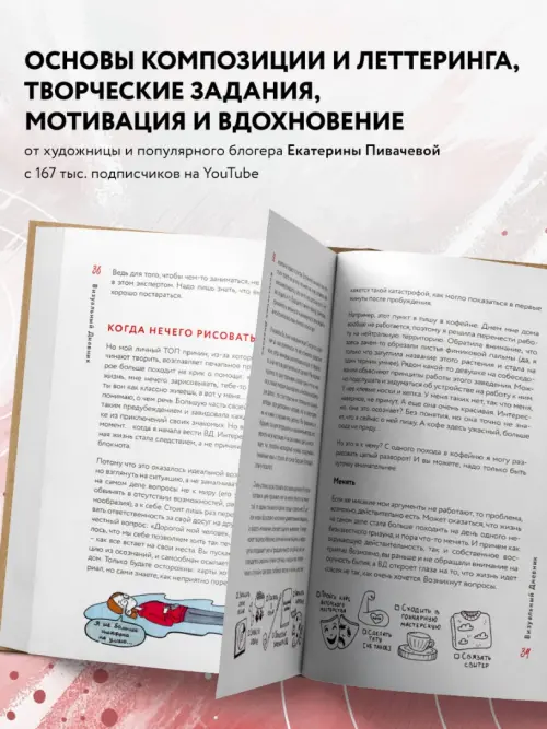 Визуальный дневник - это блокнот, который хранит в себе самые интересные события жизни в виде рисунков. Художница Екатерина Пивачева поделится с вами всеми секретами ведения яркого блокнота, который учит рисовать и вдохновляет жить. Вы узнаете, как найти вдохновение для ежедневного рисования, развить свою креативность и сформировать вкус, а также найти свой уникальный стиль для создания иллюстраций. "Визуальный дневник" - это книга для тех, кто хочет научиться рисовать истории и делиться ими с другими.
