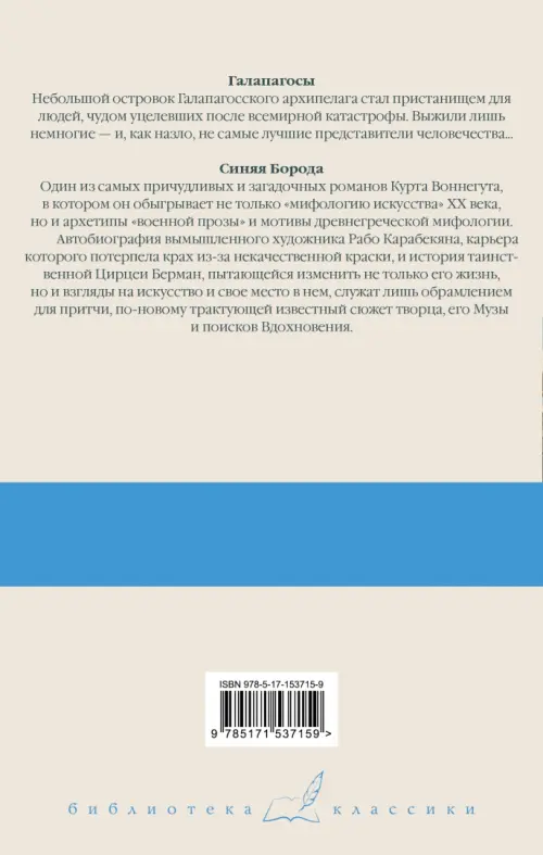 Если вы обнаружили ошибку в описании товара «Галапагосы. Синяя Борода» (авторы: Воннегут Курт), то выделите её мышкой и нажмите Ctrl+Enter. Спасибо, что помогаете нам стать лучше!