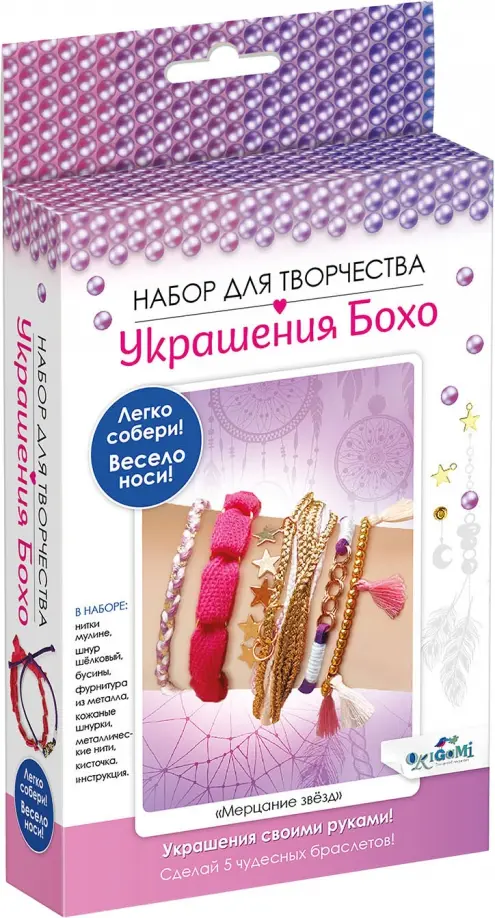Если вы обнаружили ошибку в описании товара «Набор для создания украшений Бохо. 5 браслетов. Мерцания звезд», то выделите её мышкой и нажмите Ctrl+Enter. Спасибо, что помогаете нам стать лучше!