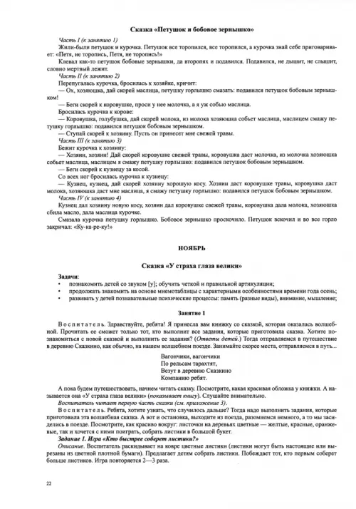 Настоящее методическое пособие содержит конспекты игровых сказочных занятий с подробными комментариями по их проведению и разрезной наглядный материал.