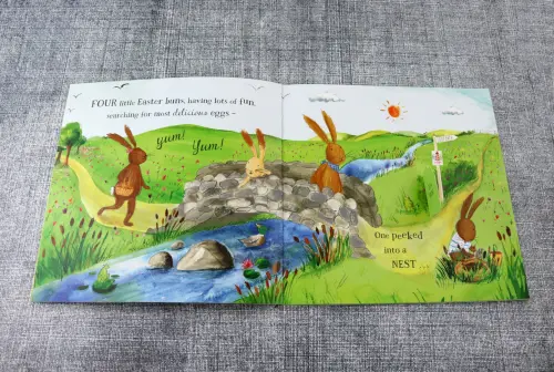 Веселая интерактивная книжка "Пять маленьких пасхальных кроликов" основана на популярном детском стишке и наполнена очаровательными кроликами, ягнятами, цыплятами и утятами. Приготовьтесь к пасхальному веселью в этом прекрасно иллюстрированном издании для чтения вслух.