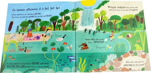 Each spread uncovers an exciting new scene, at a certain time of the day and the year. Spot all the animals, minibeasts, leaves, trees and flowers. The wood is full of treasures.