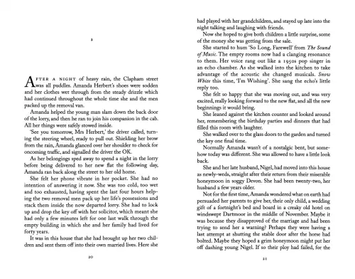 Meanwhile Amanda Herbert finds herself homeless in rainy Clapham. Her flat purchase has fallen through, and her children are absorbed in their own dramas. Then she spots an advertisement for an Atlantic cruise, and realises a few weeks on-board would tide her over – and save her money – until the crisis is solved.